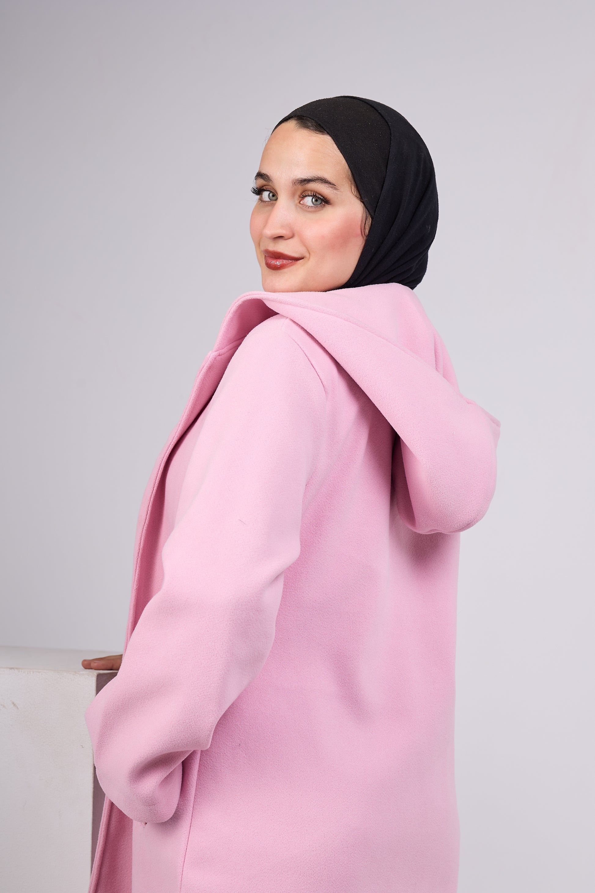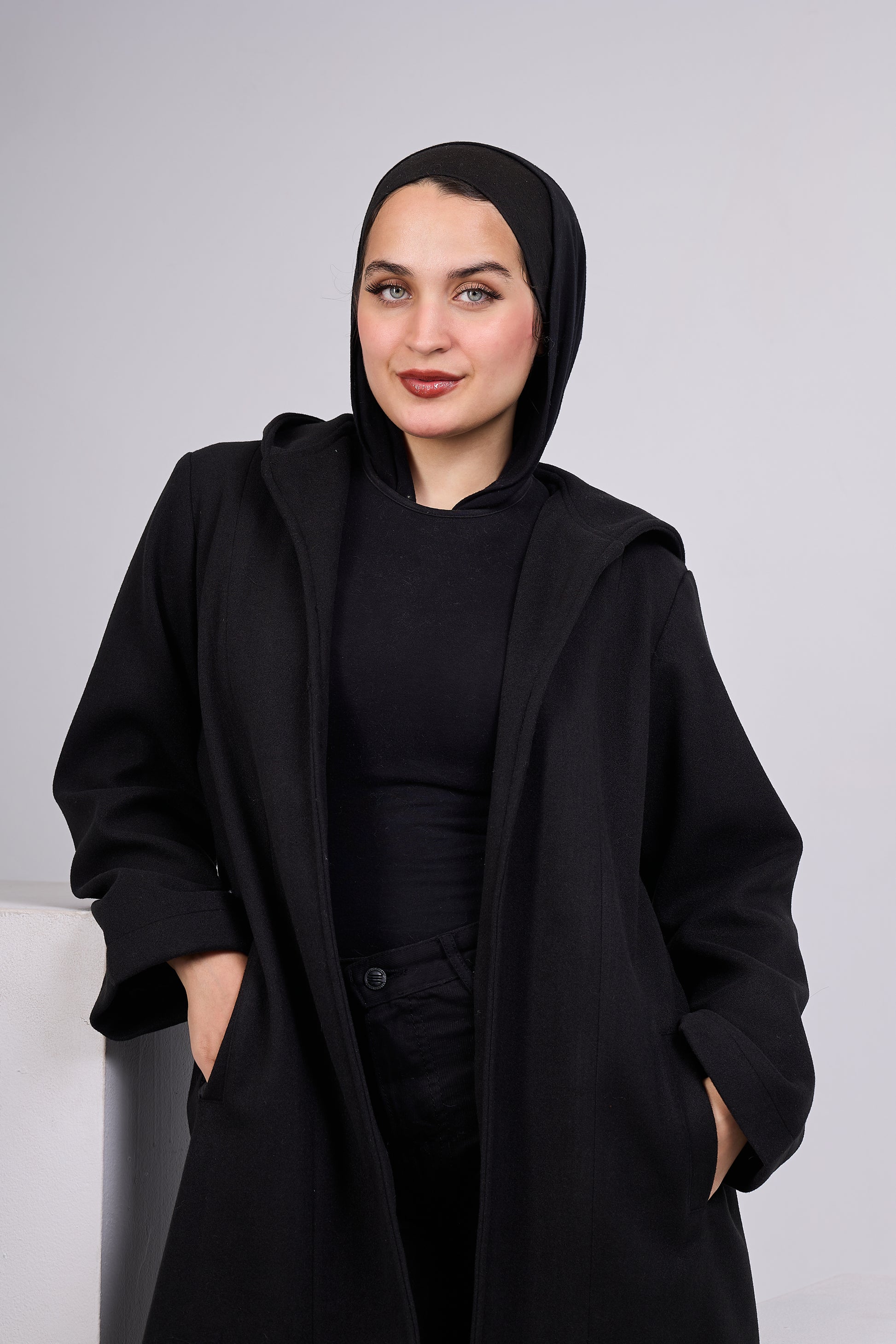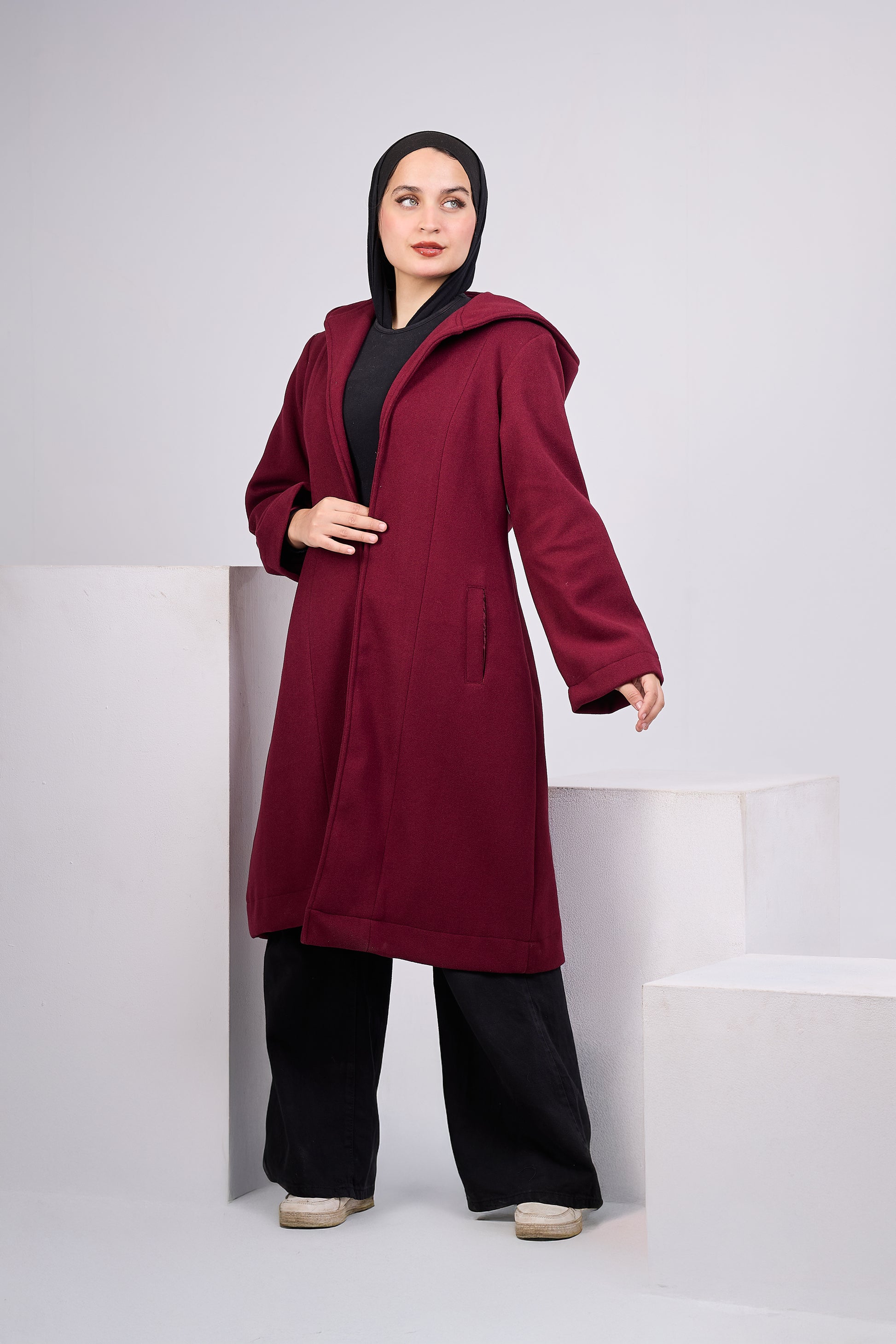 Designed for everyday winter outings, this coat combines soft wool fabric, a practical hood, and a relaxed fit that flatters all body shapes — especially perfect for modest wear.